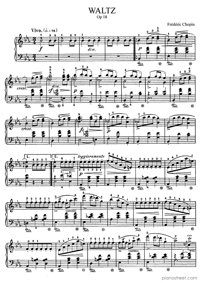 Frédéric Chopin, who was one of the prominent composers active in the Early Romantic era, wrote this piece titled "Waltz"Op. 18 in E-flat Major from Waltzes. The composition is categorized as "Piece" in the sheet music library and the level of difficulty in the piano music database is 8.