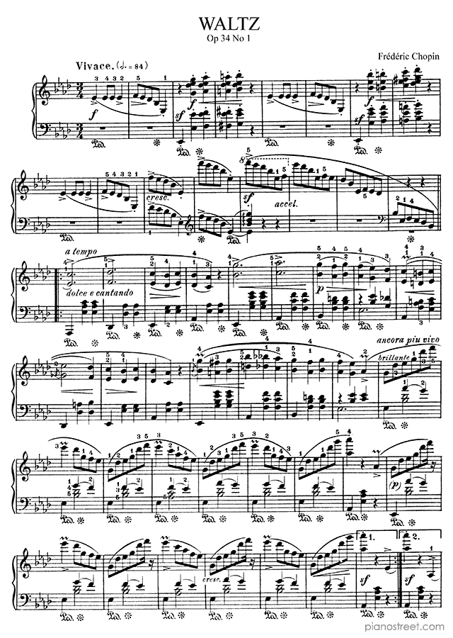 DOWNLOAD Waltz in A-flat Major Op. 34 No. 1 by Frédéric Chopin (published in 1835) . High quality classical piano scores from the Piano Street sheet music library.