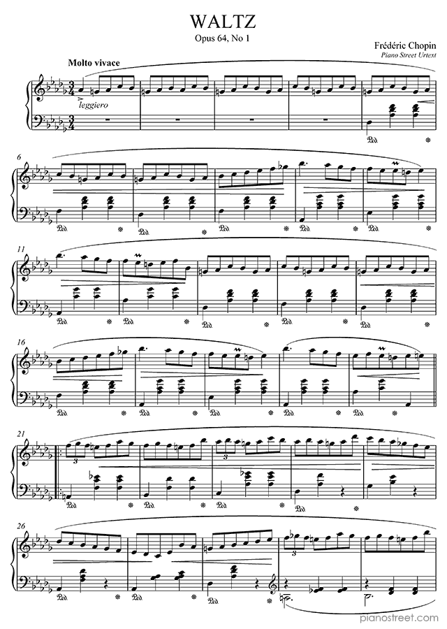 Waltz Op. 64 No. 1 in D-flat Major, by the early romantic composer Frédéric Chopin. This piano piece was initially published in the year 1847 and is included in Waltzes by Chopin.
