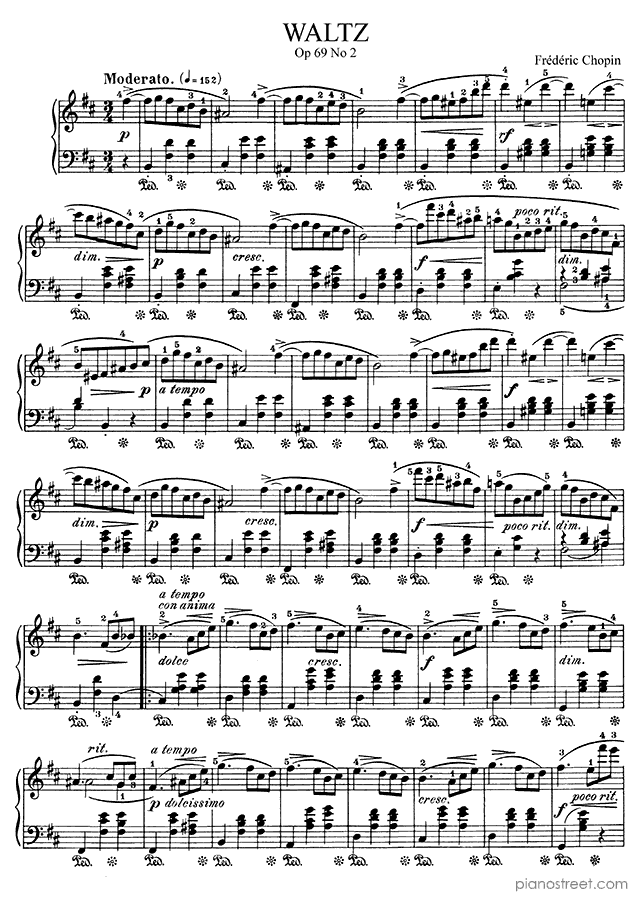 Waltz in B Minor - Op. 69 No. 2 is a piano piece by the early romantic composer Frédéric Chopin who lived between the years 1810 and 1849.