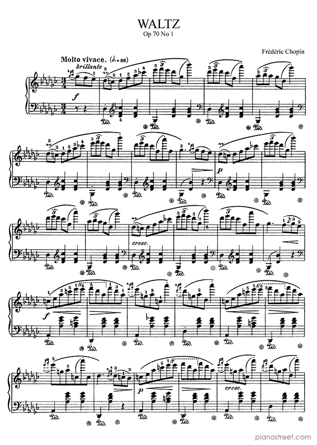 DOWNLOAD: Frédéric Chopin - Waltz Op. 70 No. 1 in G-flat Major ( from Waltzes by Chopin). Piano sheet music to print immediately or to view in mobile devices.