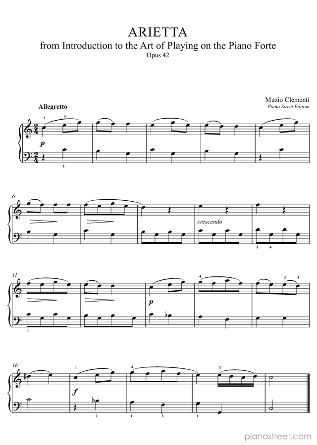 Arietta in C Major - Op. 42 is a piano piece by the classical composer Muzio Clementi who lived between the years 1752 and 1832.