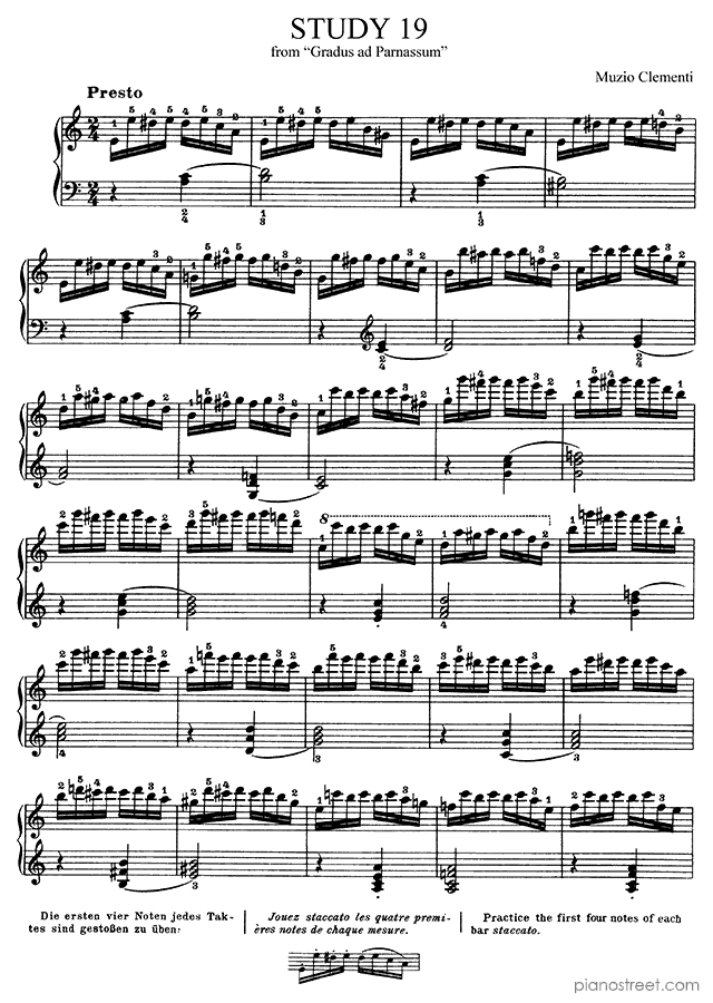 Classical piano sheet music by Muzio Clementi to download and print instantly: Study No. 19 in the key of . Level 8, composition type: Study (published in 1817)