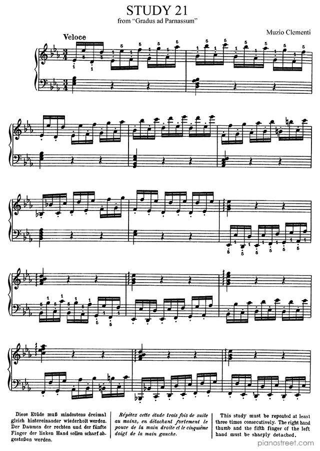 Classical piano sheet music by Clementi to download: Study No. 21 in the key of This piece has difficulty level 8+ in the category Study