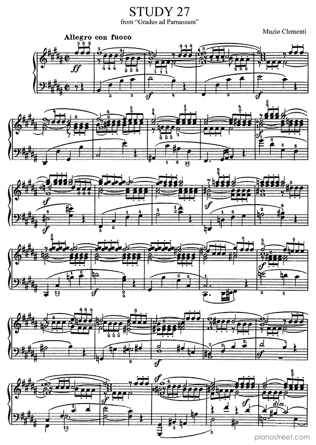 Clementi: Study No. 27 in B Major (published in 1817) . DOWNLOAD piano sheet music from Piano Street digital sheet music library.