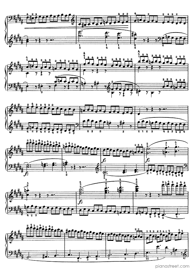 Muzio Clementi: Study No. 28 in B Major from Gradus ad Parnassum - piano sheet music to print instantly. This piece is level 8 and was composed during the Classical period.