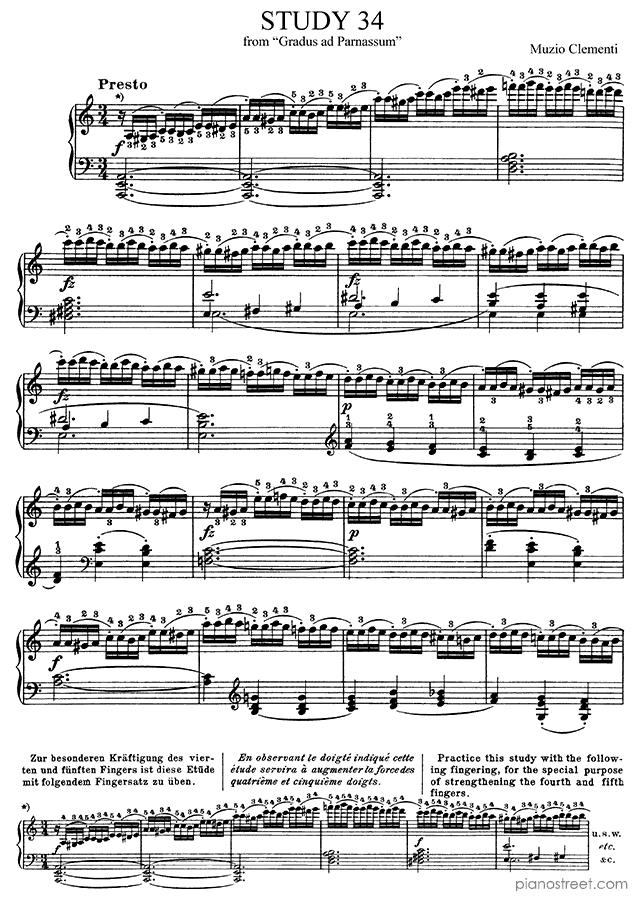Classical piano sheet music by Muzio Clementi to download and print instantly: Study No. 34 in the key of . Level 8, composition type: Study (published in 1817)