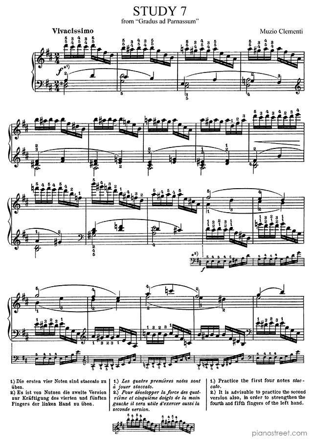 Downloadable piano sheet music from Gradus ad Parnassum by Muzio Clementi to print: Study No. 7 in D Major (published in 1817)