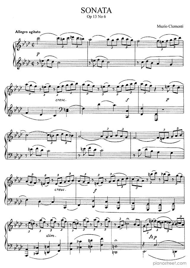 Downloadable piano sheet music from Sonatas by Muzio Clementi to print: Sonata Op. 13 No. 6 in F Minor (published in 1785)