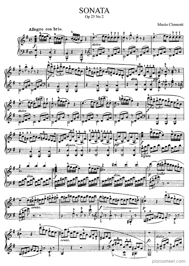 Classical piano sheet music by Clementi to download: Sonata Op. 25 No. 2 in the key of This piece has difficulty level 8 in the category Sonata