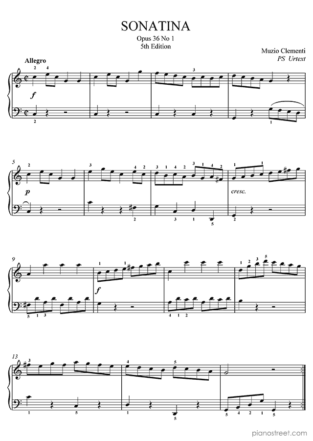 Classical piano sheet music by Clementi to download: Sonatina, 5th revised edition Op. 36 No. 1 in the key of This piece has difficulty level 3 in the category Sonata