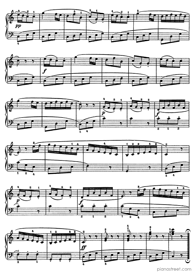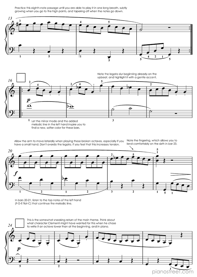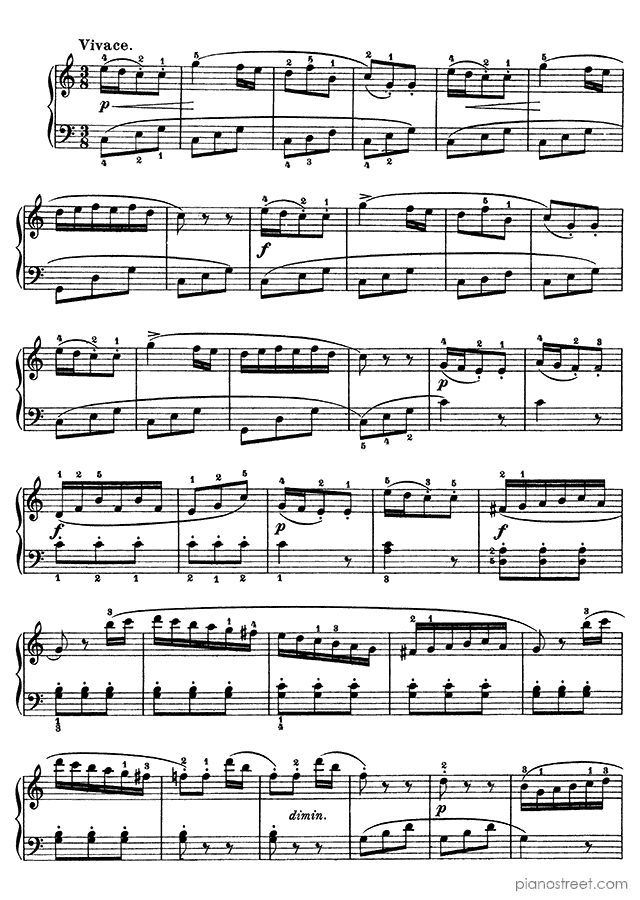 Far from being a mere exercise for beginners, all three movements of this sonatina are exquisitely crafted and can really grab the attention of an audience. It has everything that a piano sonata should have, but in a smaller scale, making it accessible to less experienced pianists.