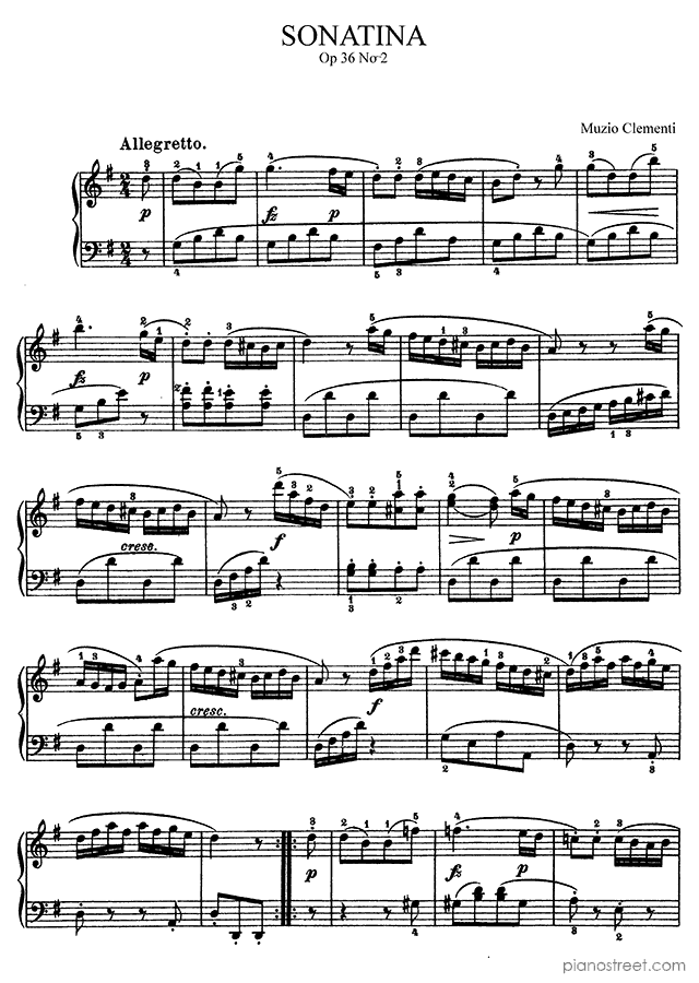 Classical piano sheet music by Clementi to download: Sonatina Op. 36 No. 2 in the key of This piece has difficulty level 4 in the category Sonata