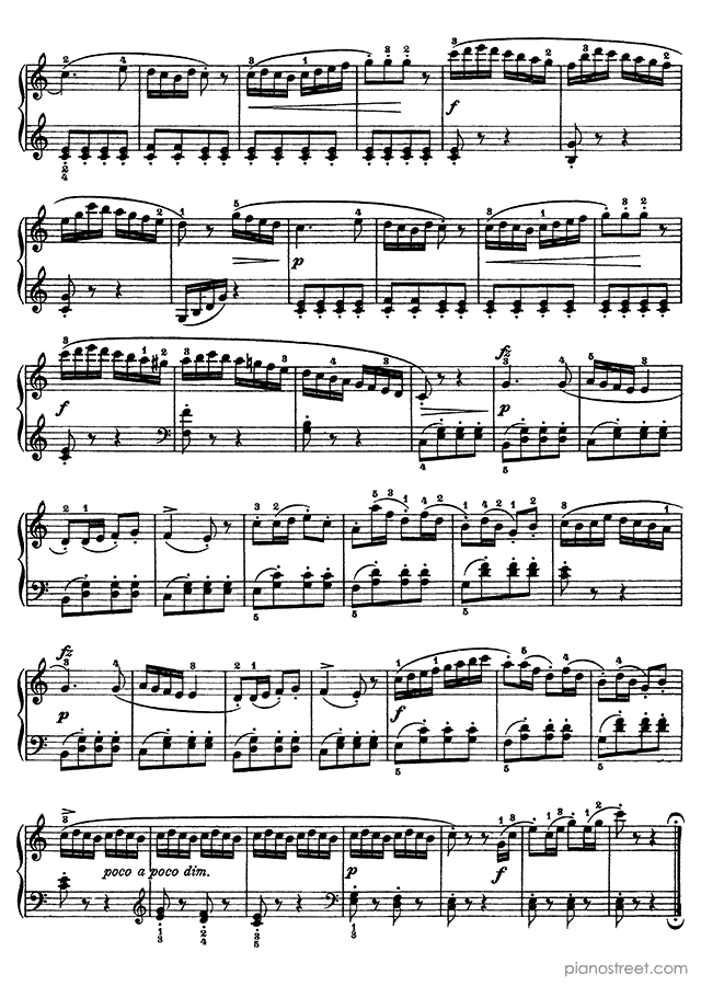 Clementi’s “Six Progressive Sonatinas for the Piano Forte” Op. 36 were published in 1797 and revised in 1820. They offer the intermediate student a series of delightful little pieces to use for developing their talents, ordered in gently escalating difficulty. Today, they rank among Clementi’s most well-known works, remaining a staple in the teaching repertoire all over the world.Forum posts about this piece: