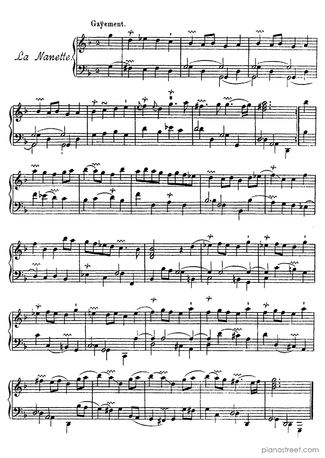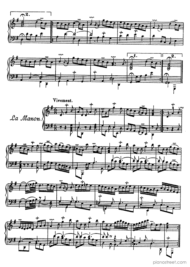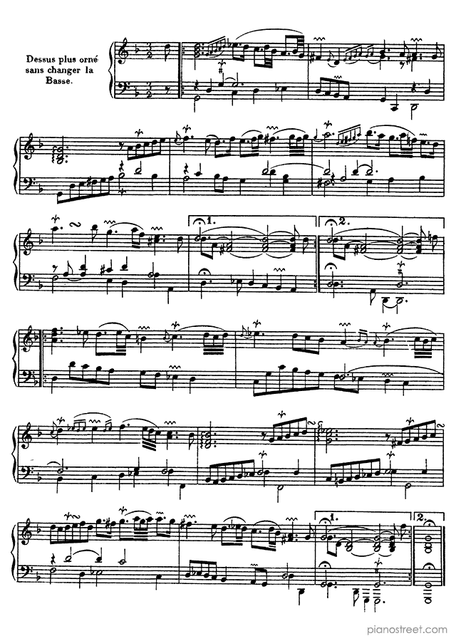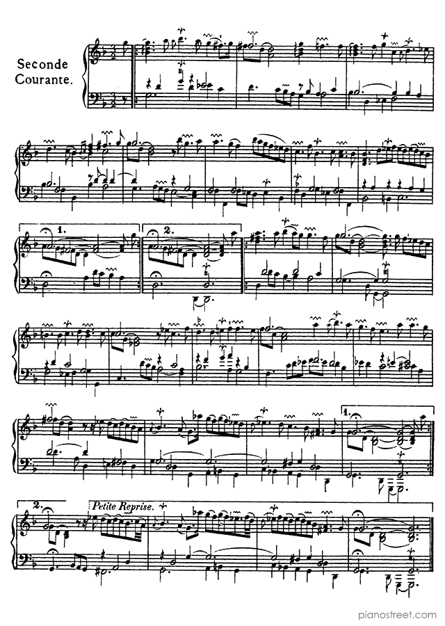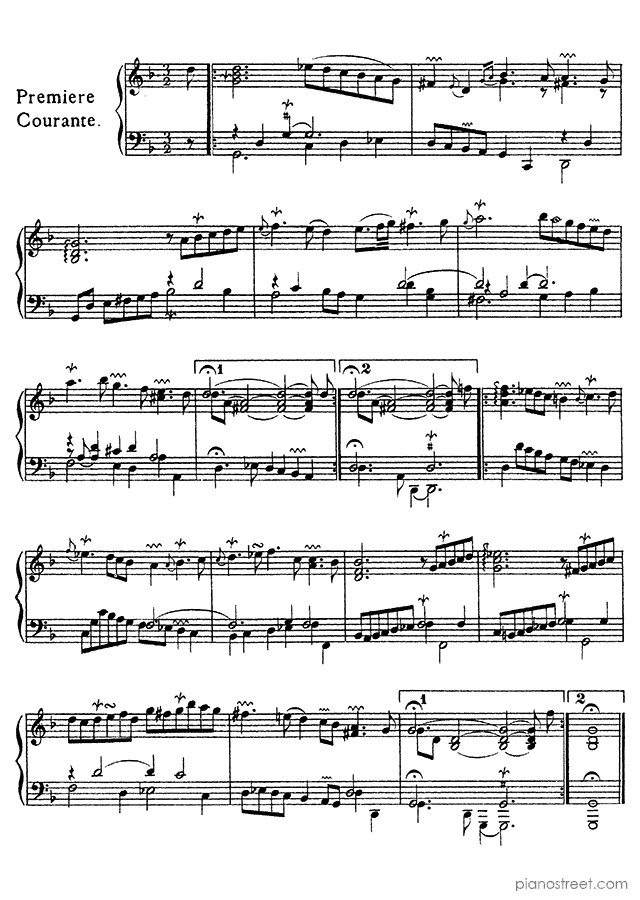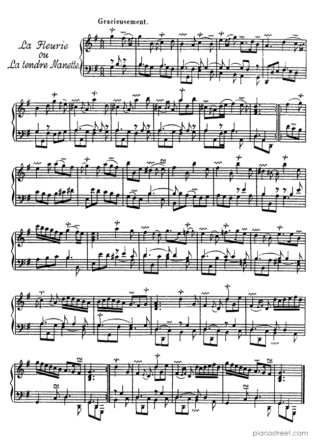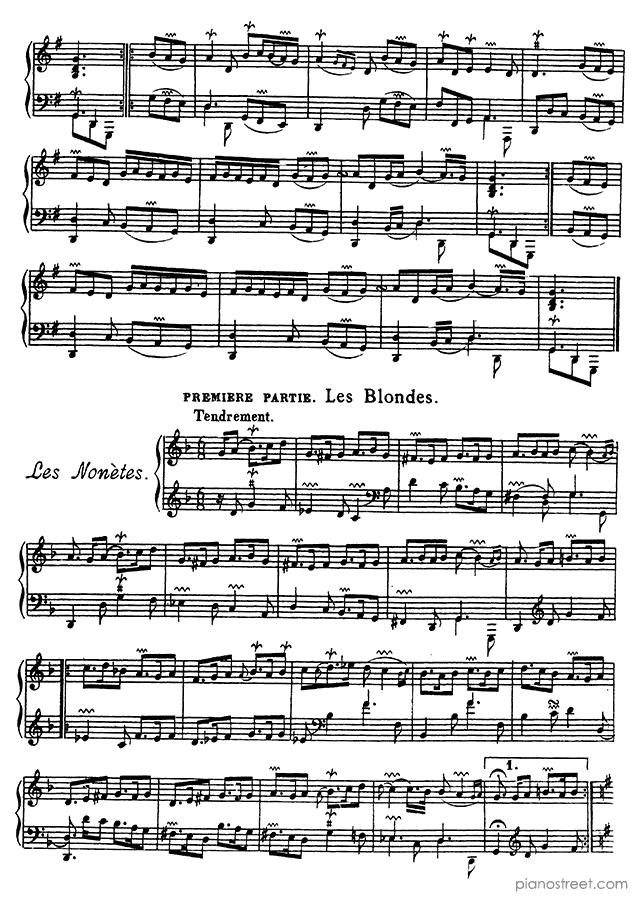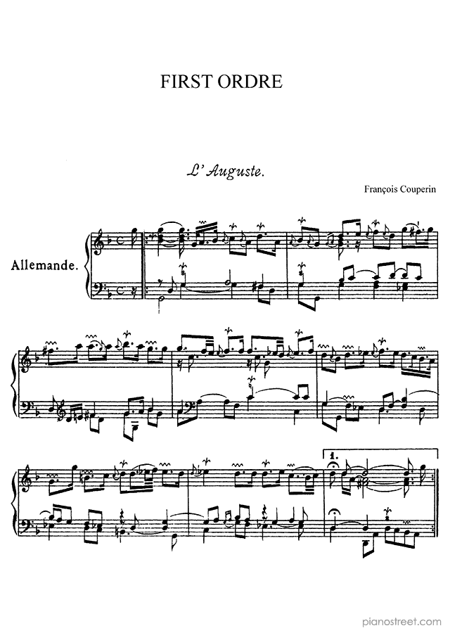 Piano sheet music and recordings. This piece is by François Couperin: Ordre No. 1 in G Minor . Level 8, Period: Baroque