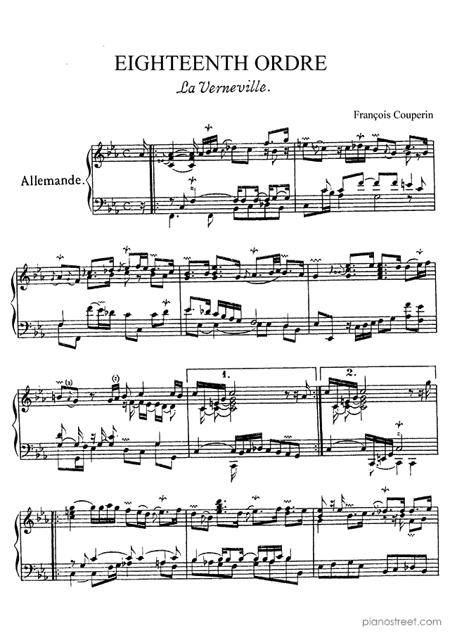 Downloadable piano sheet music by François Couperin to print: Ordre No. 18 in F Minor