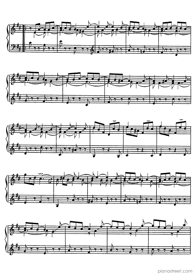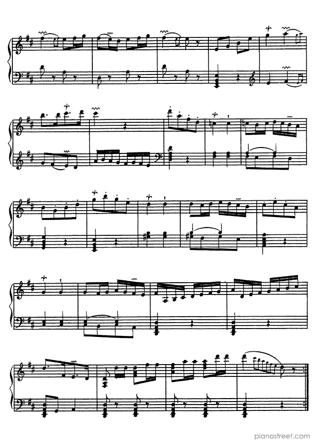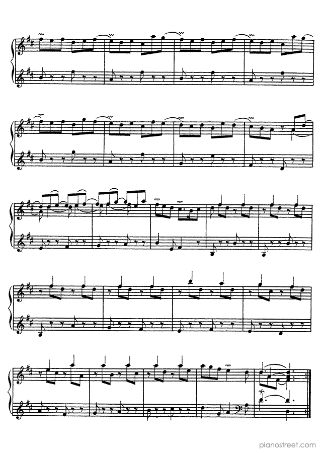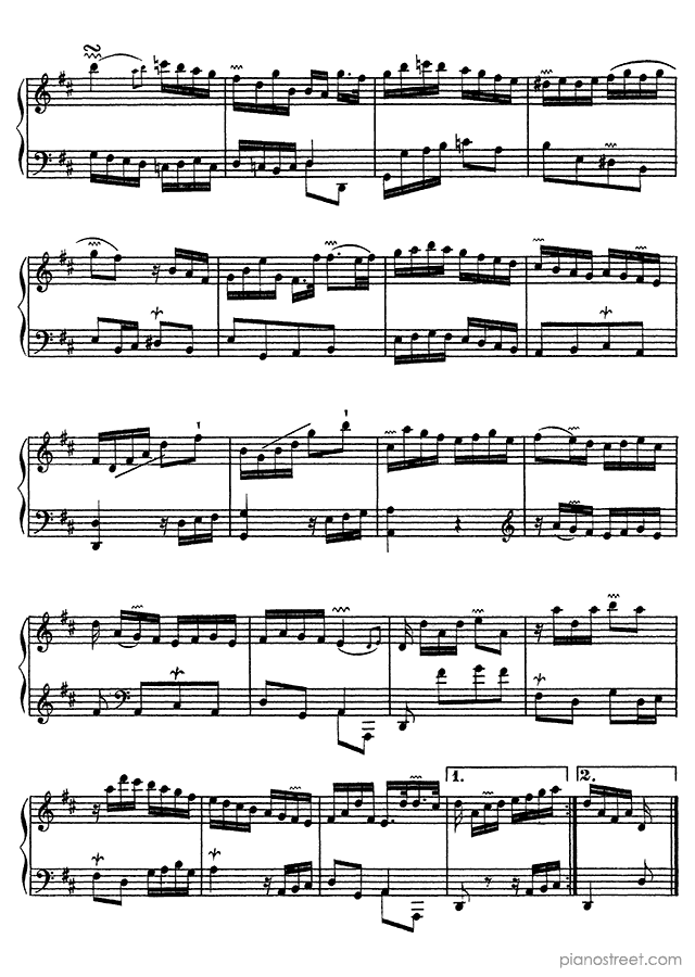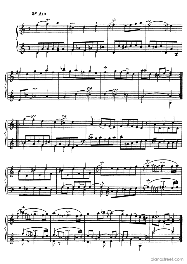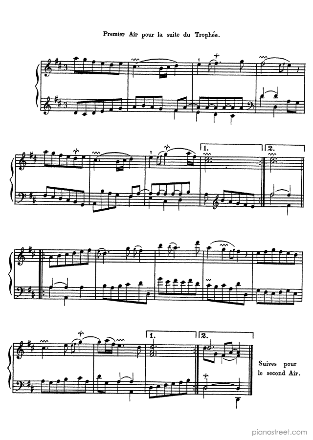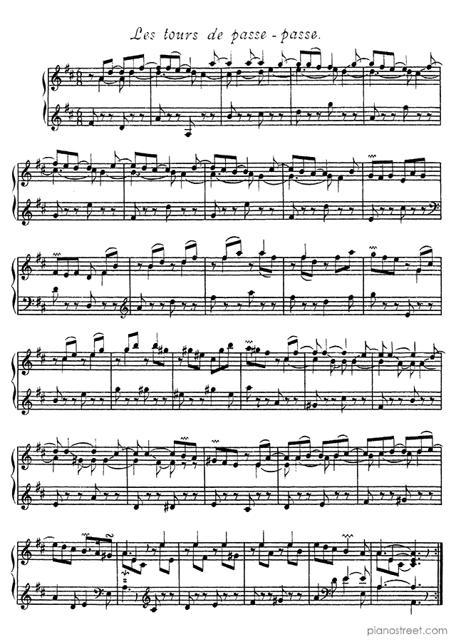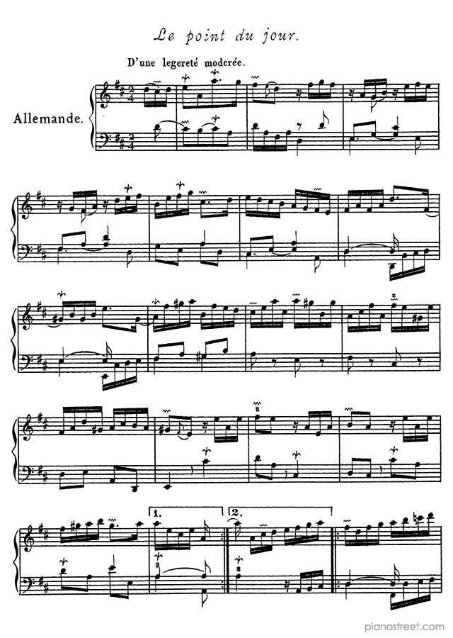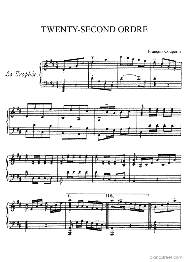 François Couperin: Ordre No. 22 in D Major - piano sheet music to print instantly. This piece is level 8 and was composed during the Baroque period.