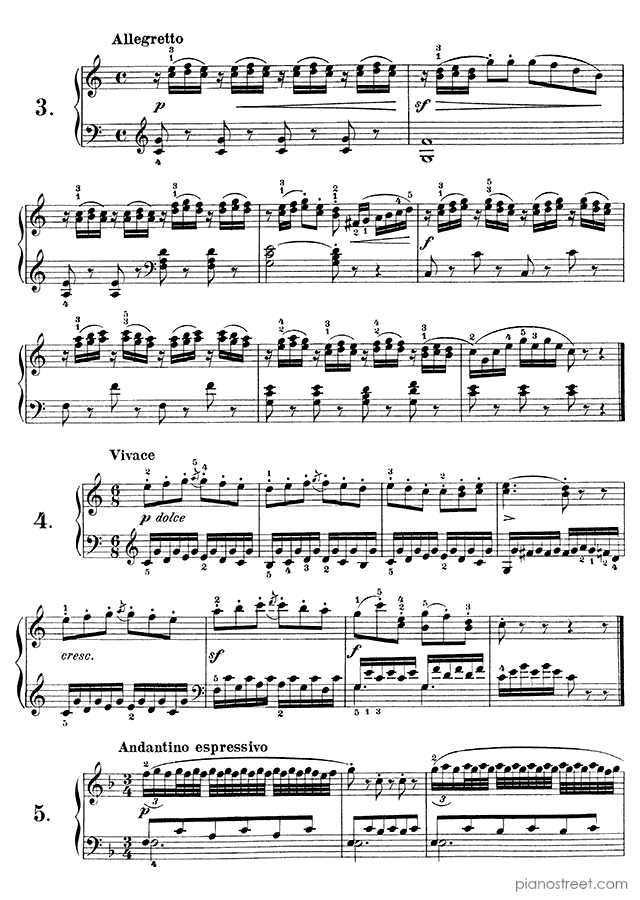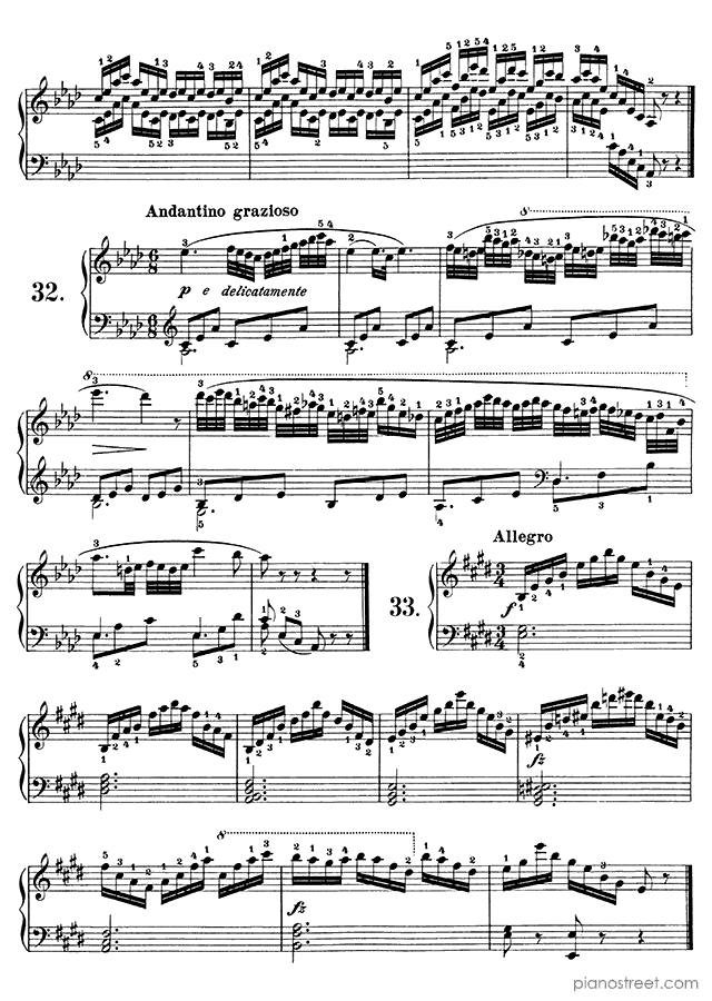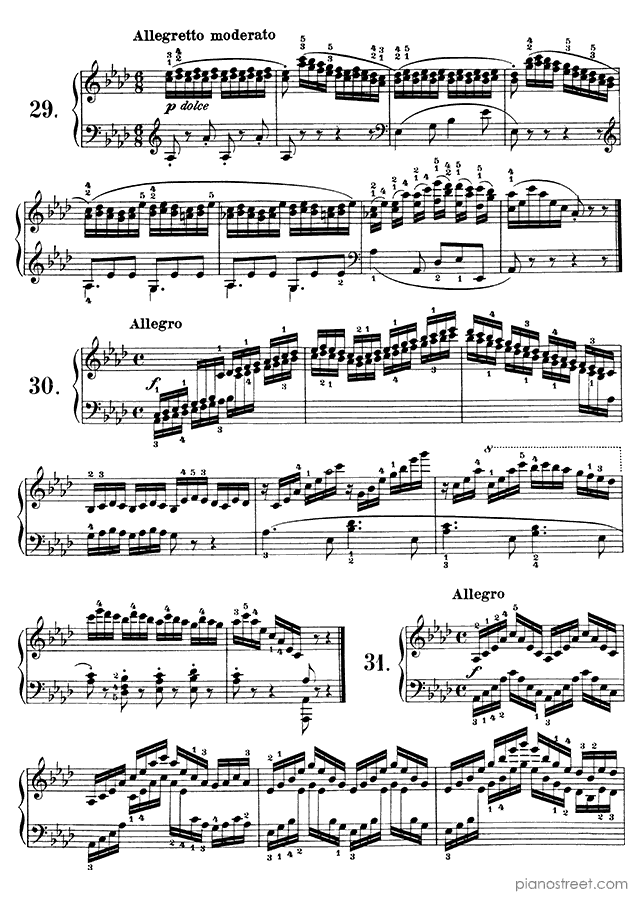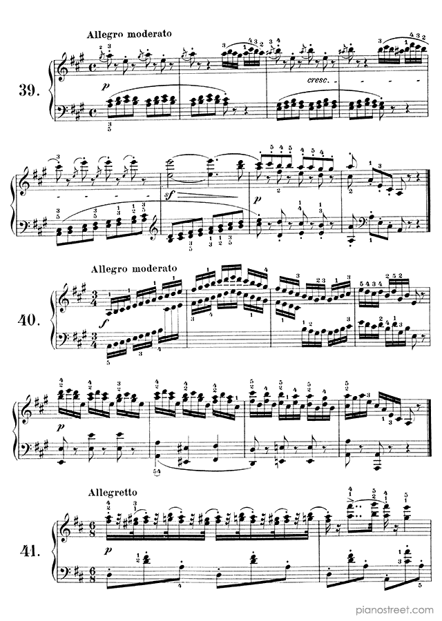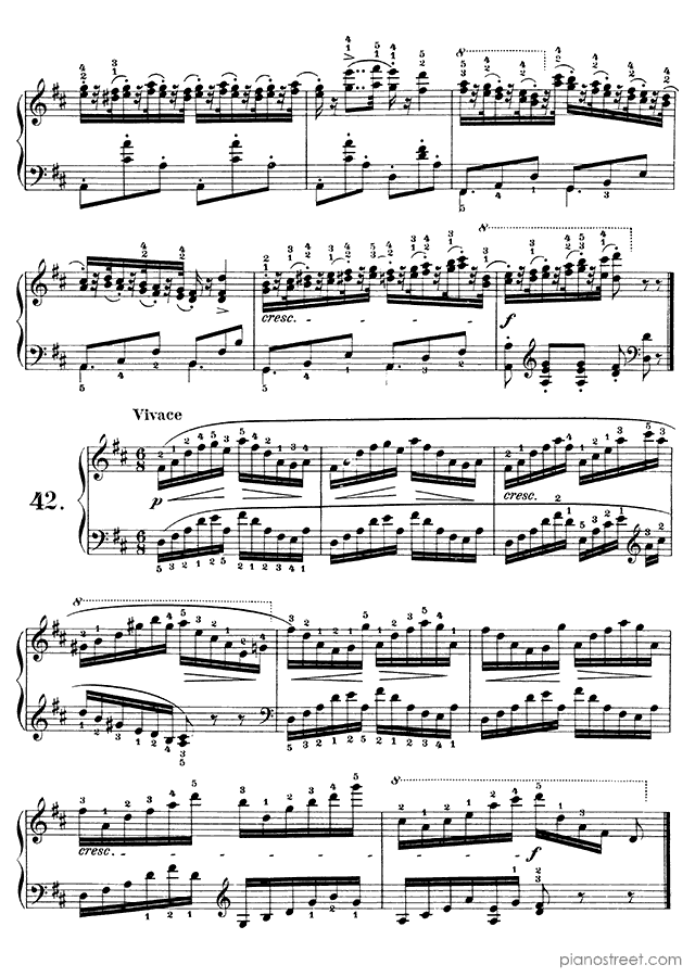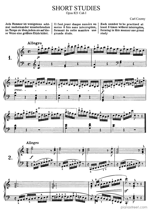 Classical piano sheet music by Carl Czerny to download and print instantly: Studies 1-42 Op. 821 in the key of . Level 5, compositional type: Study