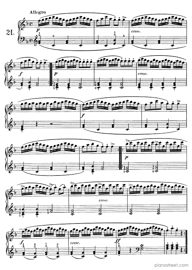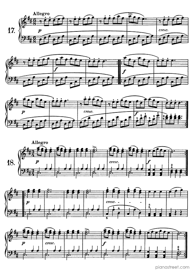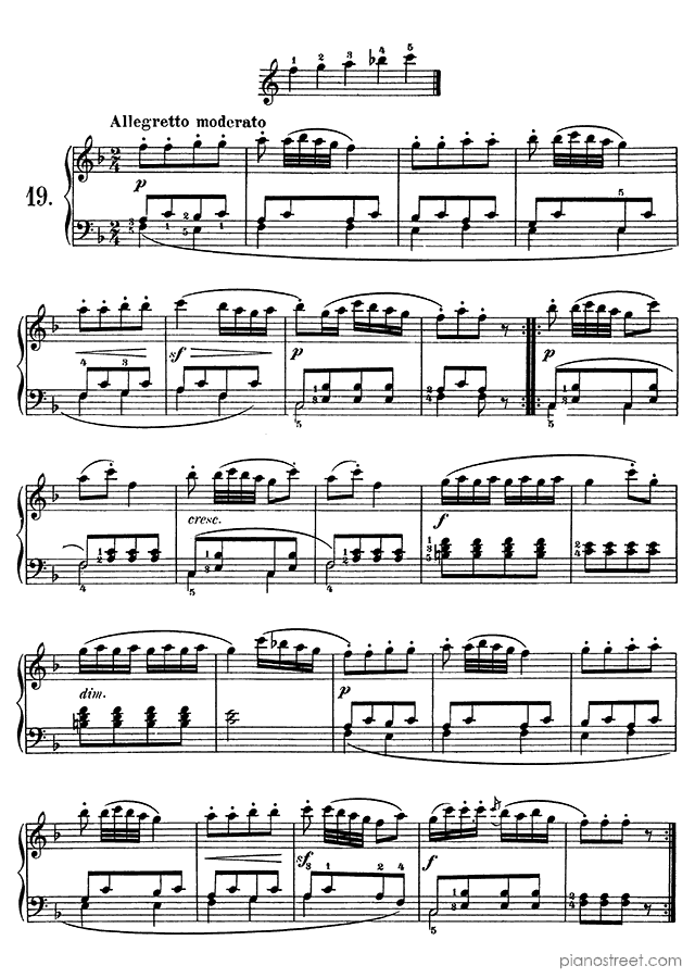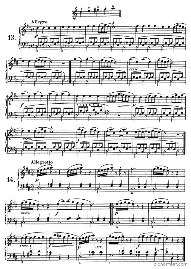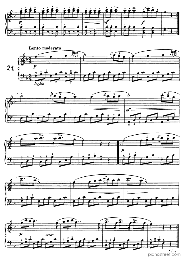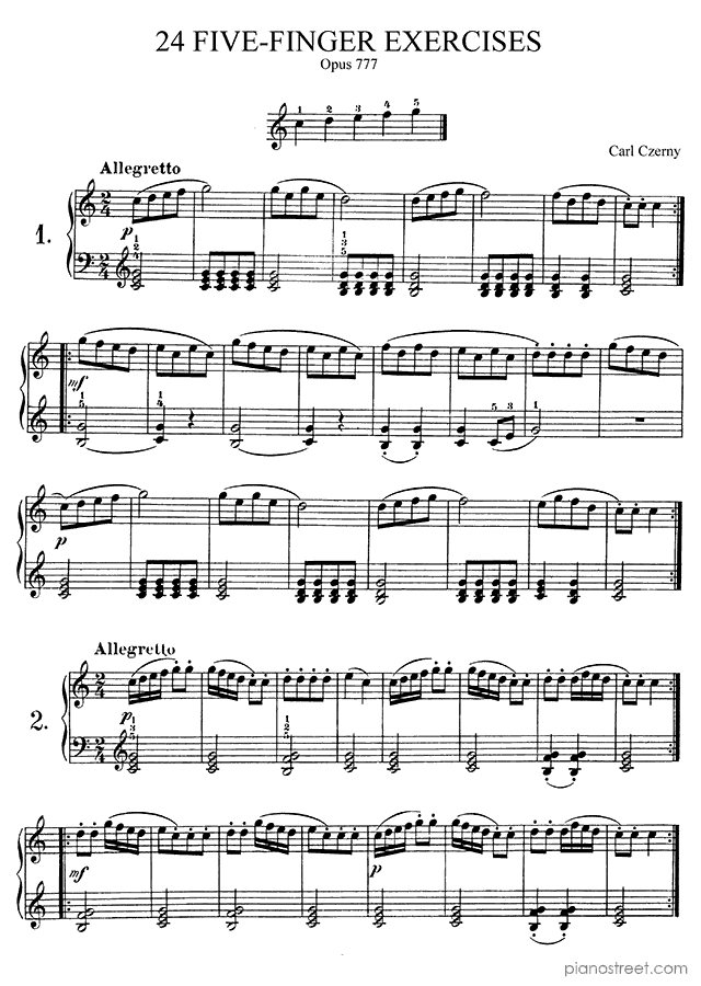 24 Five-Finger Exercises Op. 777 by Carl Czerny. Sheet music and recordings of thousands of piano pieces by Carl Czerny and many other composers to view in digital devices, print or listen to.