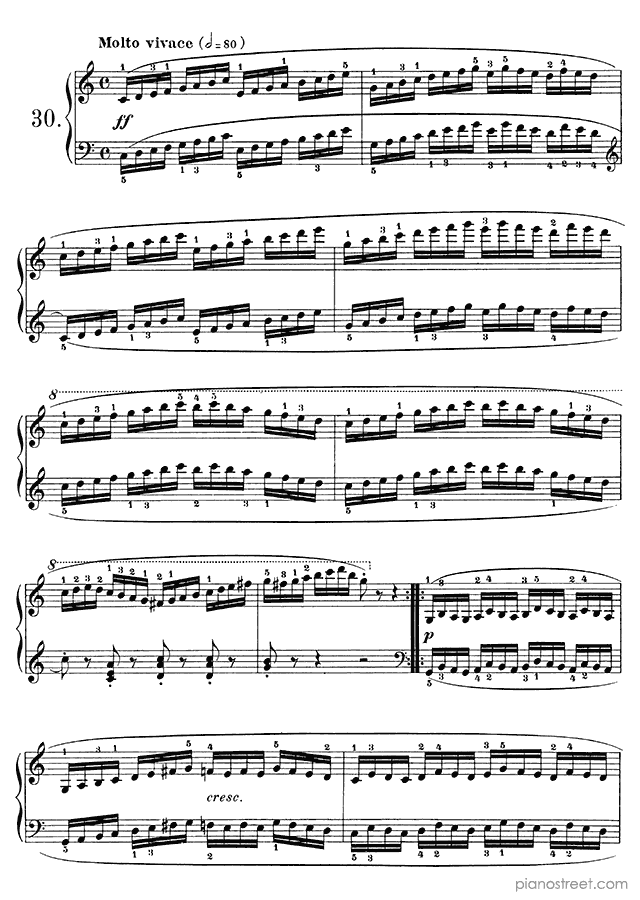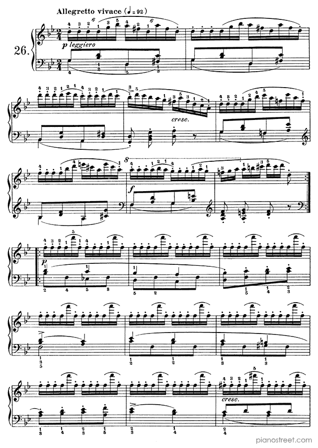 Carl Czerny, one of the composers active in the Classical era, wrote this piece titled Study Op. 849 No. 26 in G Minor from 30 New Studies in Technique. The composition is categorized as "Study" in Piano Street's sheet music library and the level of difficulty is 5.