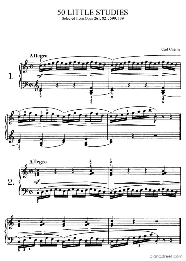 50 Little Studies by Carl Czerny. Sheet music and recordings of thousands of piano pieces by Carl Czerny and many other famous composers to view in your digital device, print out or listen to.