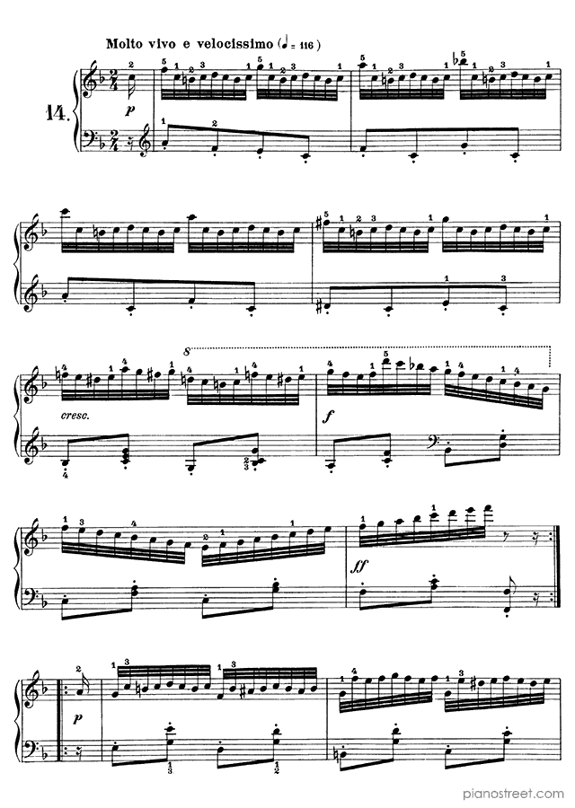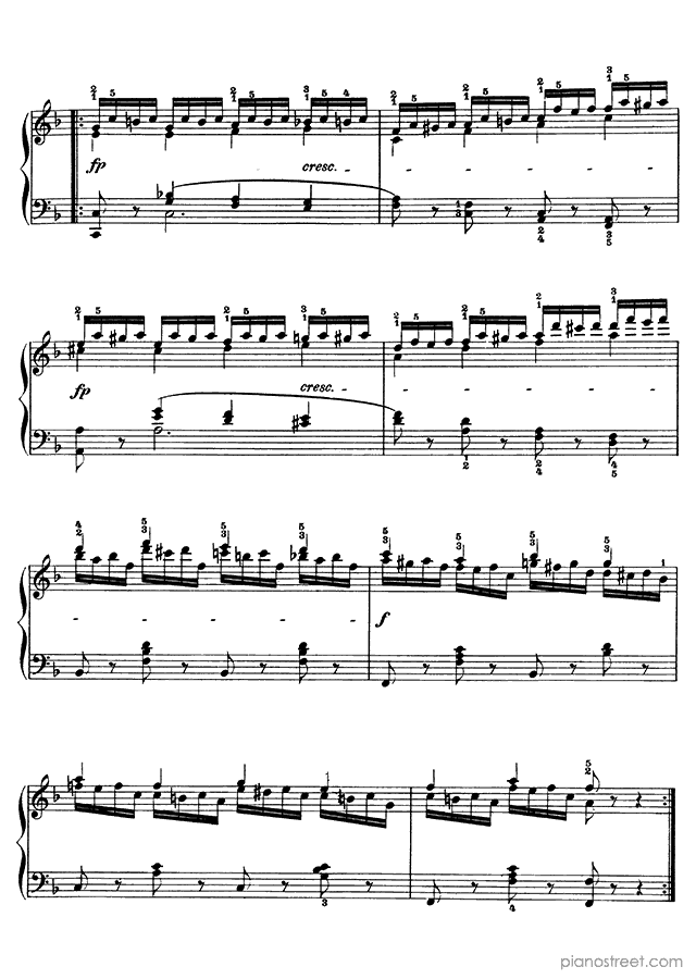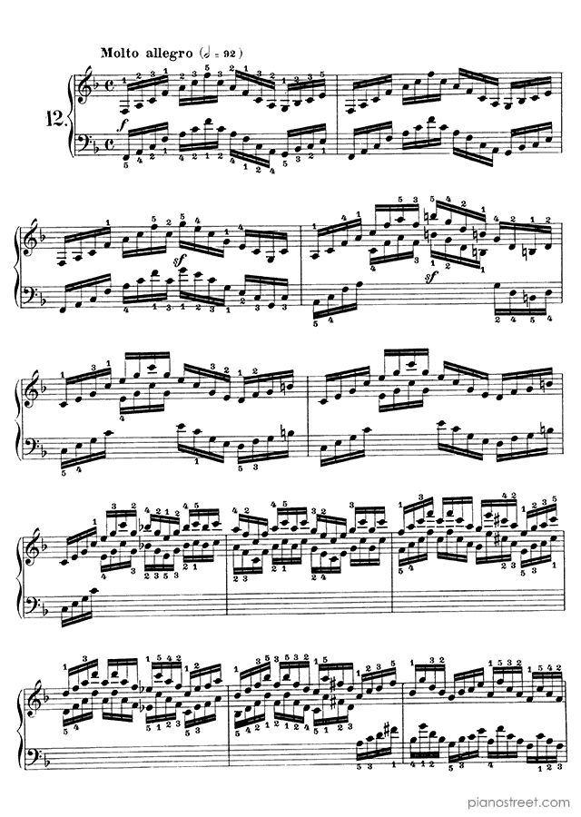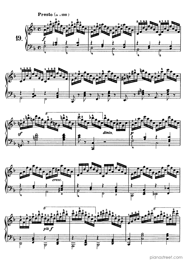 Czerny: Study Op. 299 No. 12 in F Major . DOWNLOAD piano sheet music from Piano Street digital sheet music library.