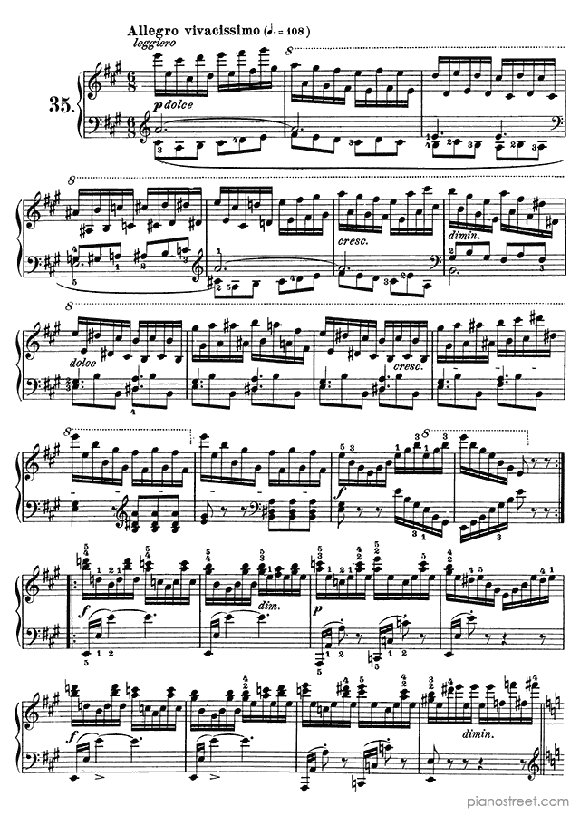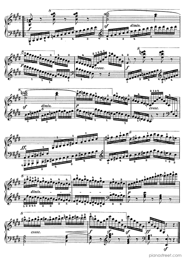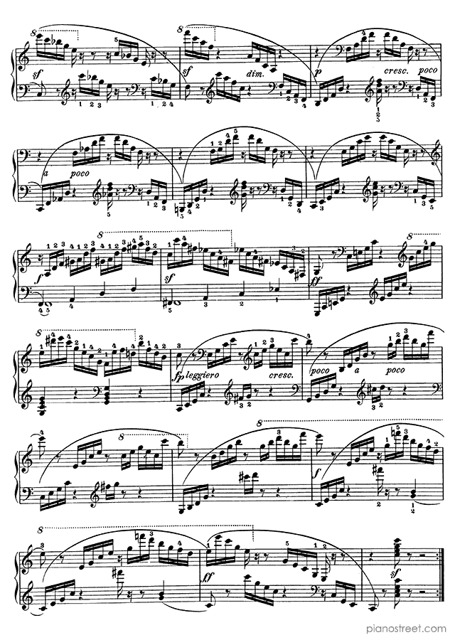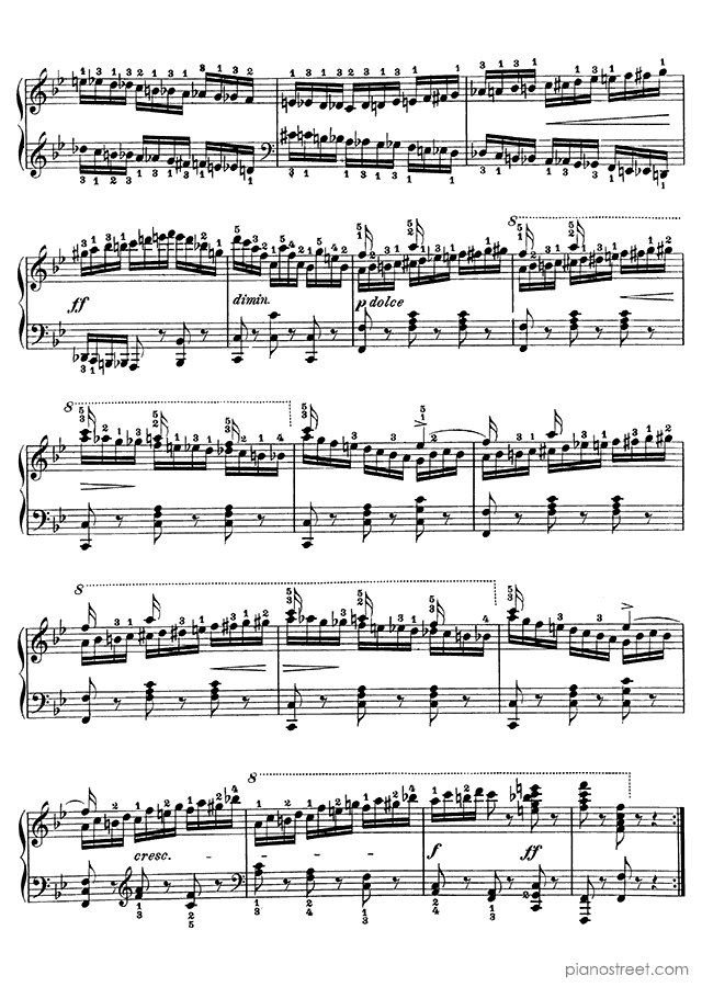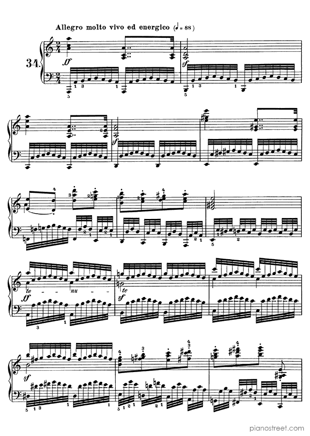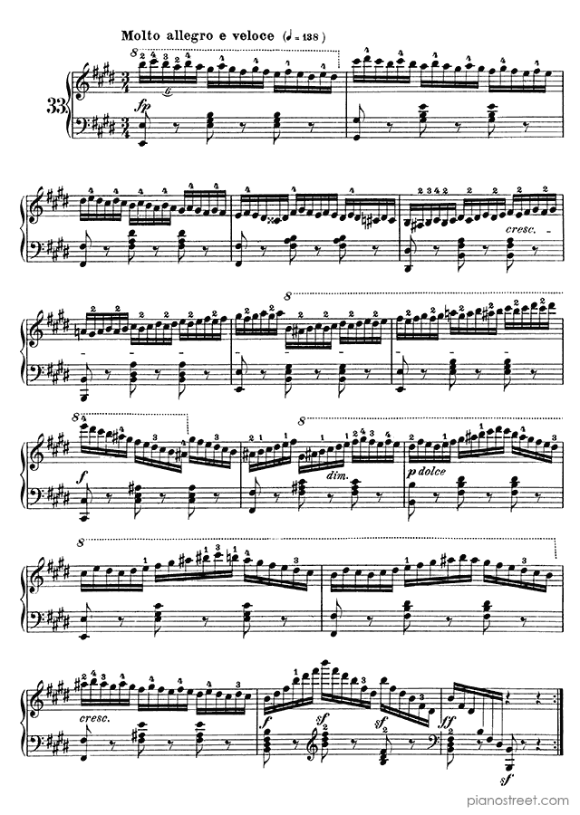 Piano sheet music downloads and recordings. This piece is from School of Velocity by Carl Czerny: Study Op. 299 No. 40 in F Major . Level 8, Period: Classical