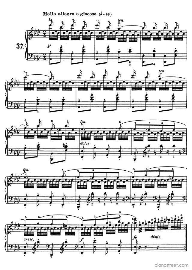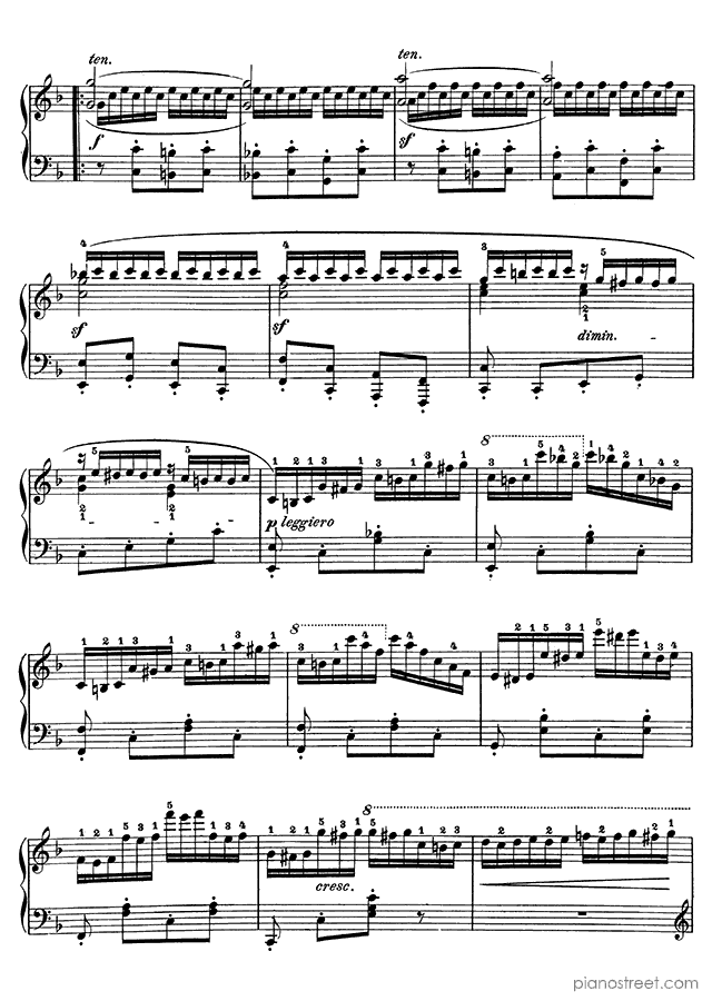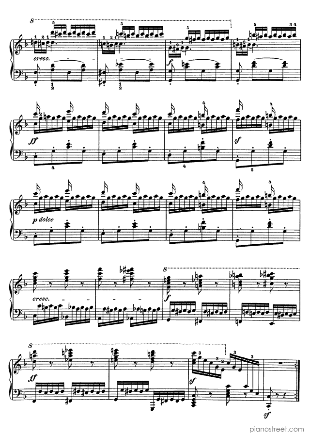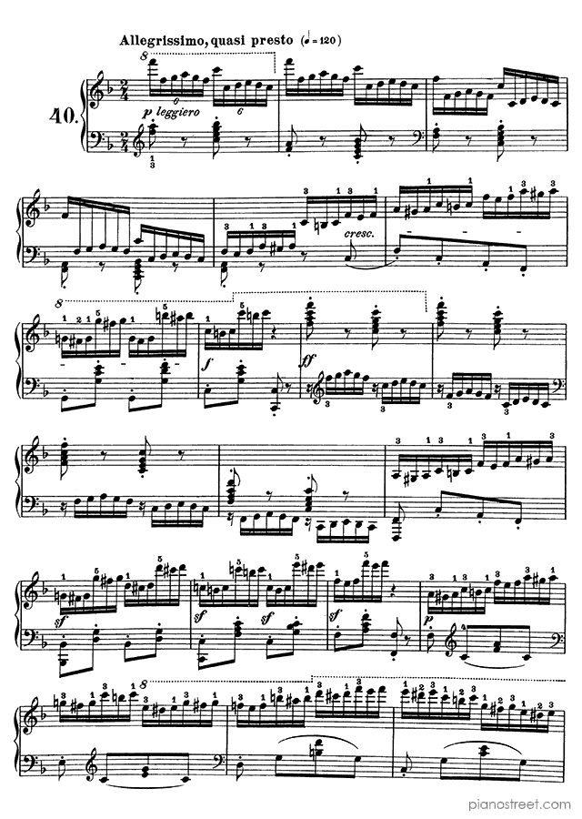 Study Op. 299 No. 40 in F Major, by the classical composer Carl Czerny. It was written during the Classical period and is included in School of Velocity by Czerny.
