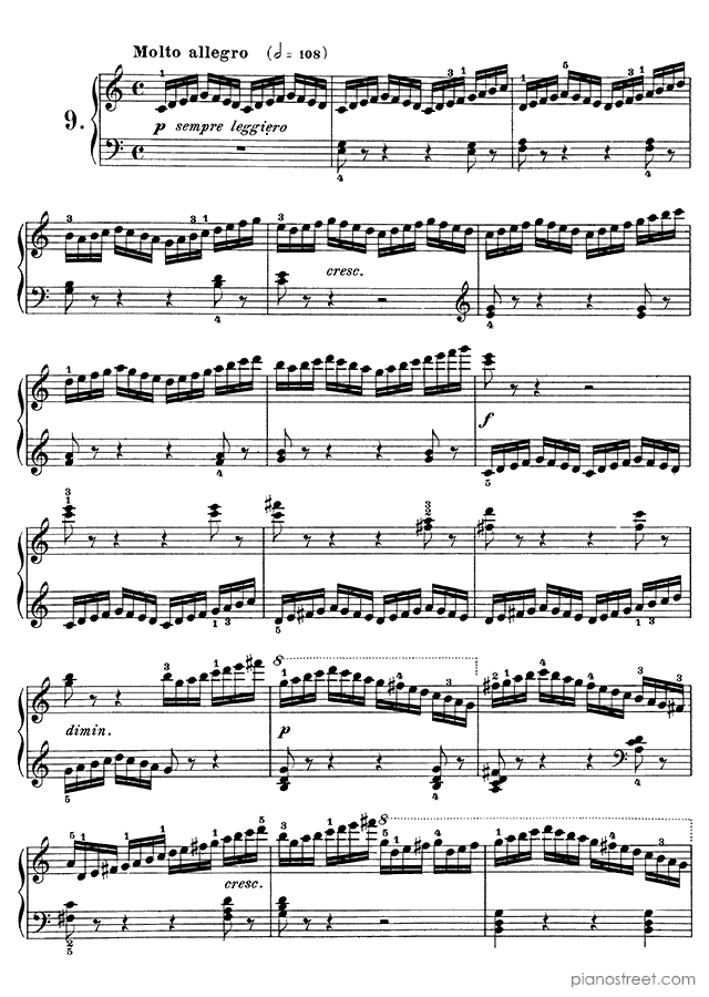 Study in C Major, Op. 299 No. 9 by the composer Carl Czerny who lived from 1791 to 1857.