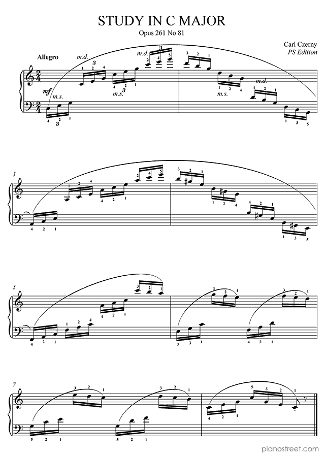 Classical piano sheet music by Czerny to download: Study in C Major Op. 261 No. 81 in the key of This piece has difficulty level 3 in the category Study