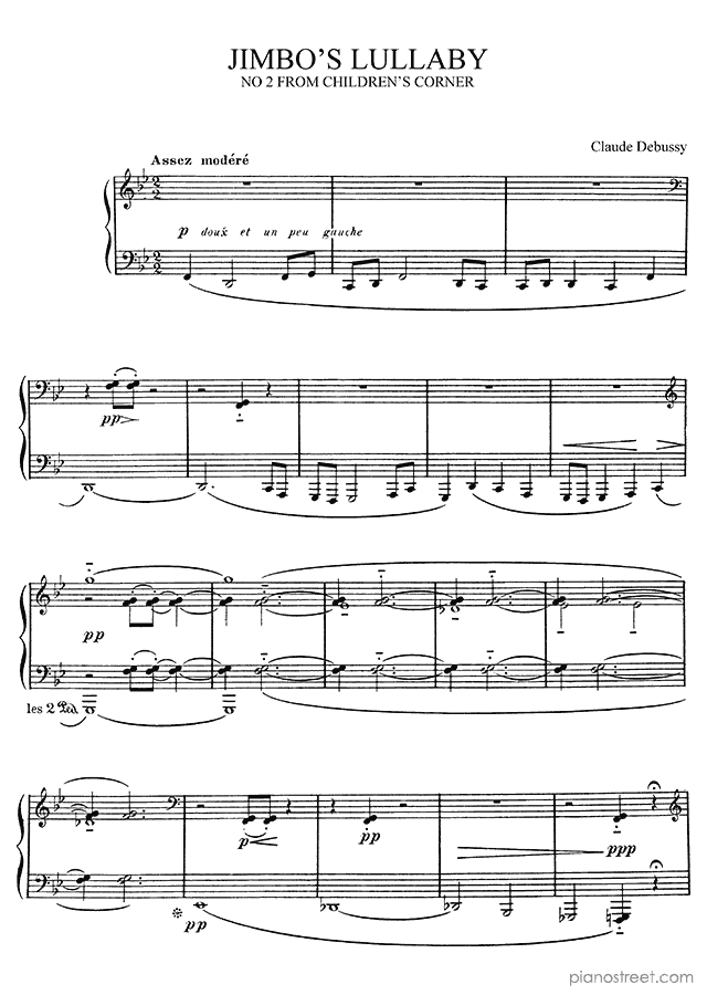 Jimbo's Lullaby No. 2 in B-flat Minor (published in 1908) from Children's Corner by Claude Debussy - piano sheet music to download and print instantly.