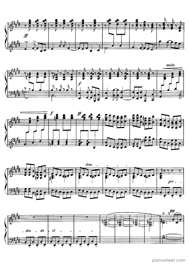 Debussy: Dance in E Major (published in 1890) . DOWNLOAD piano sheet music from Piano Street digital sheet music library.