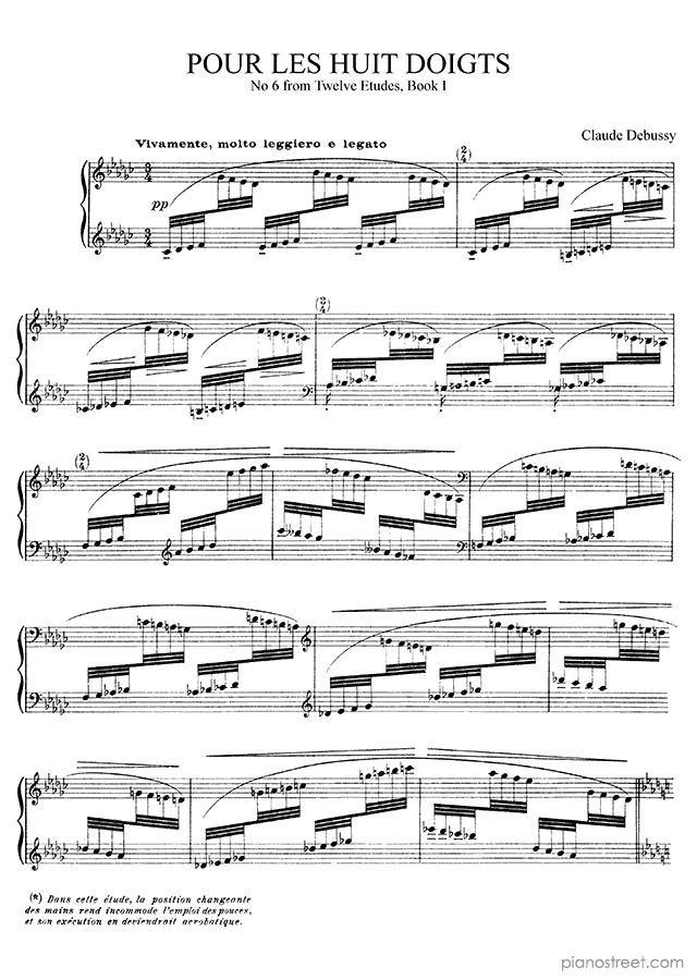 Pour les huit doigts - No. 6 is a piano piece by the impressionism composer Claude Debussy who lived between the years 1862 and 1918.