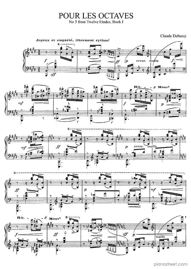 Pour les octaves No. 5 by Claude Debussy. Sheet music and recordings of thousands of piano pieces by Claude Debussy and many other famous composers to view in your digital device, print out or listen to.