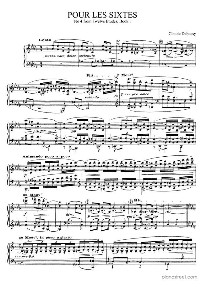 Debussy: Pour les sixtes No. 4 (published in 1915) . DOWNLOAD piano sheet music from Piano Street digital sheet music library.
