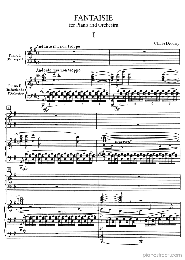 Fantaisie for Piano and Orchestra in G Major by Claude Debussy. Sheet music and recordings of thousands of piano pieces by Claude Debussy and many other famous composers to view in your digital device, print out or listen to.
