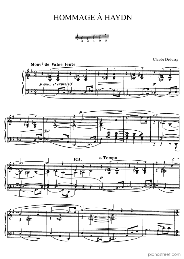 Impressionism piano sheet music by Claude Debussy to download and print instantly: Hommage à Haydn in the key of . Level 7, compositional type: Piece (published in 1909)
