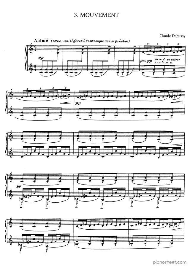 DOWNLOAD Mouvement in C Major No. 3 by Claude Debussy (published in 1905) . High quality classical piano scores from the Piano Street sheet music library.