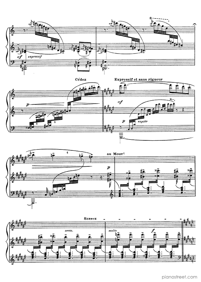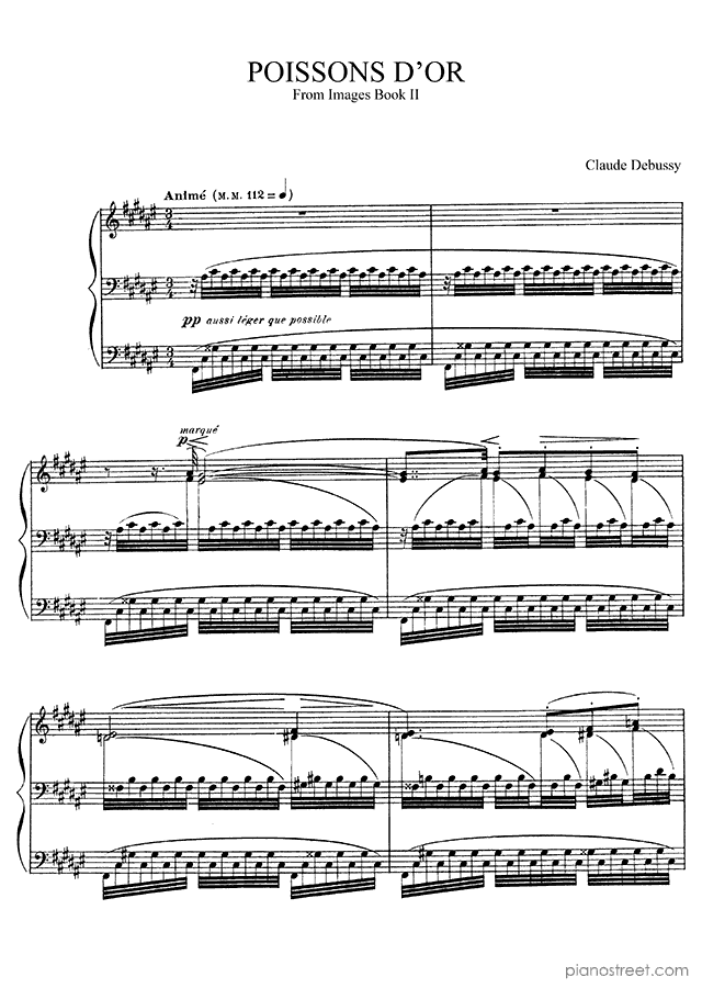 Piano sheet music and recordings. This piece is from Images Book II by Claude Debussy: Poissons d'or No. 3 (published in 1907) . Level 8+, Period: Impressionism