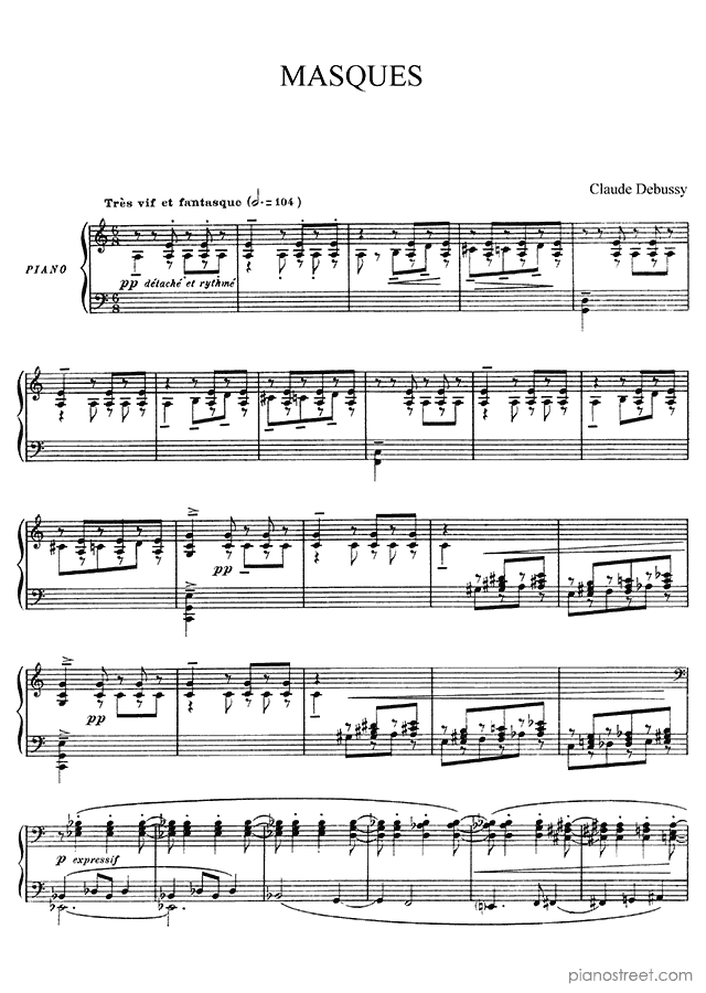 Downloadable piano sheet music by Claude Debussy to print: Masques (published in 1904)