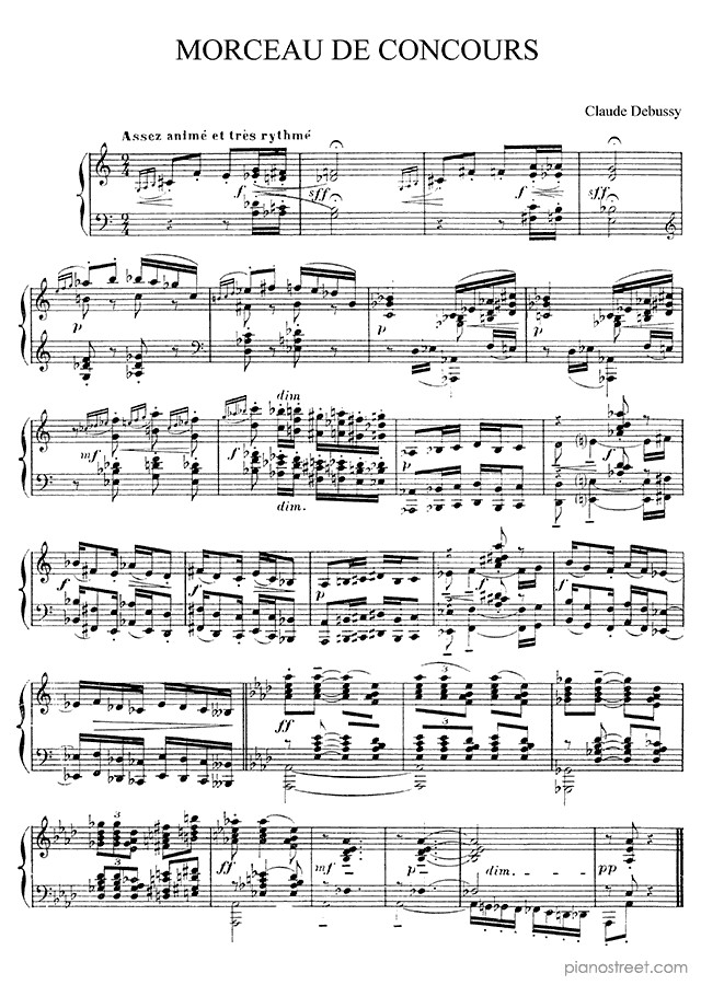 Classical piano sheet music by Debussy to download: Morceau de concours in the key of This piece has difficulty level 7 in the category Piece