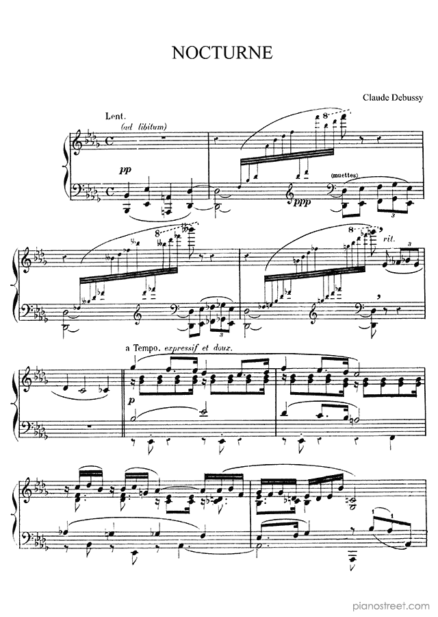 Downloadable piano sheet music by Claude Debussy to print: Nocturne in D-flat Major (published in 1892)
