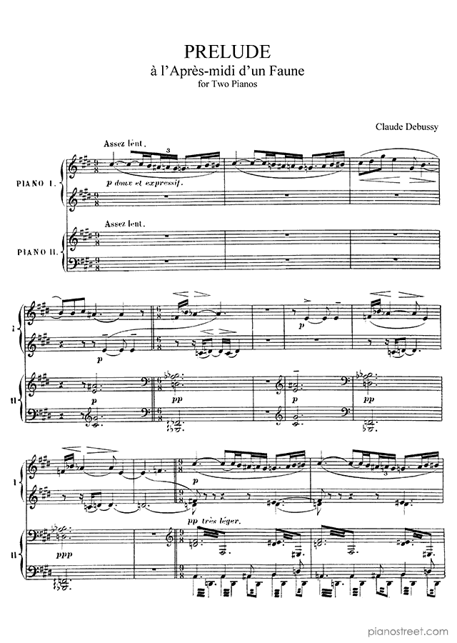 Debussy: Prélude à l'Après-midi d'un Faune - For Two Pianos (published in 1895) . DOWNLOAD piano sheet music from Piano Street digital sheet music library.