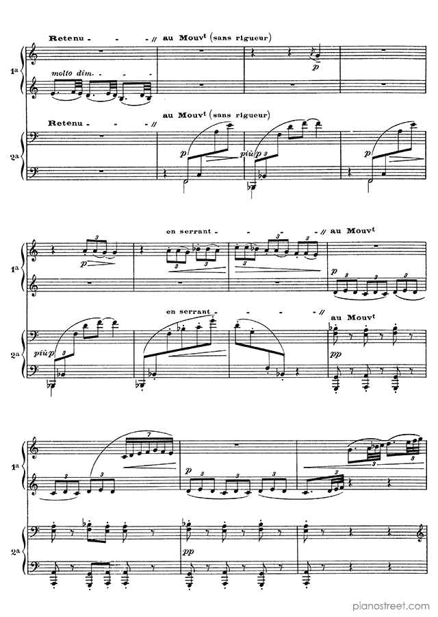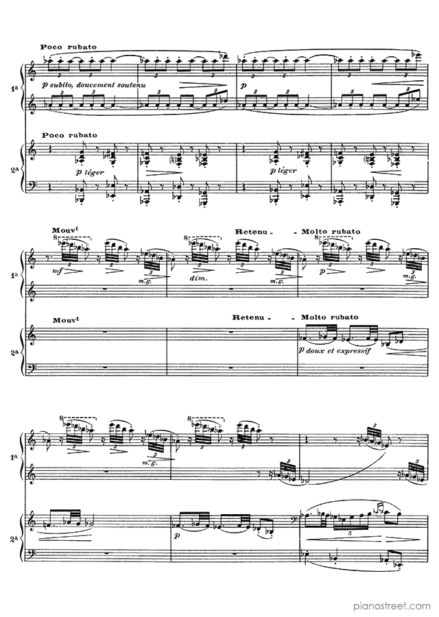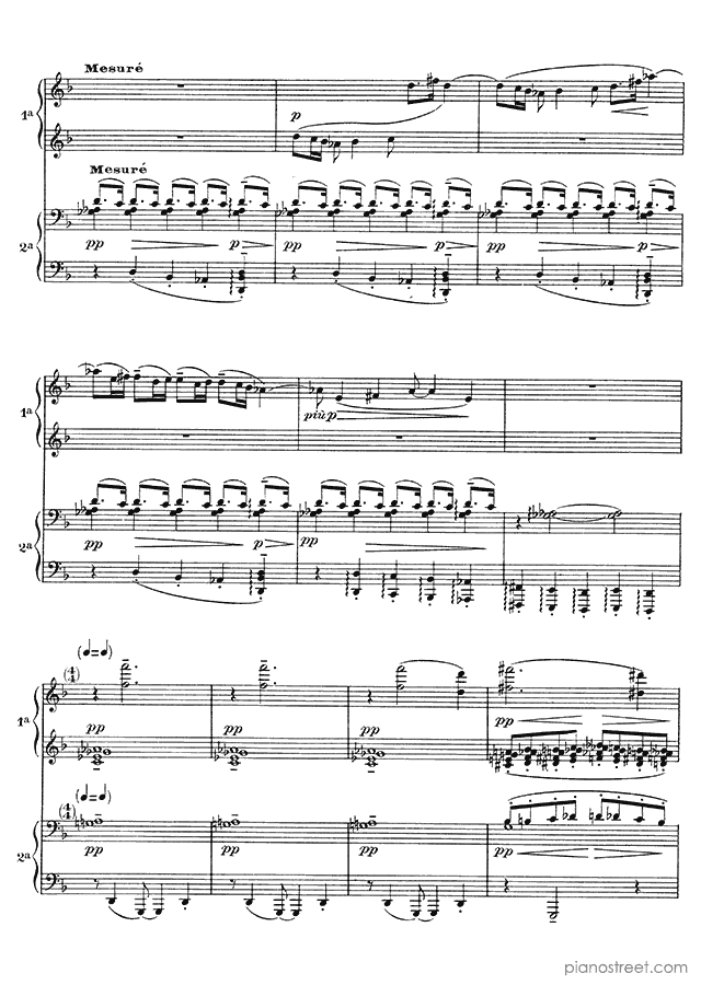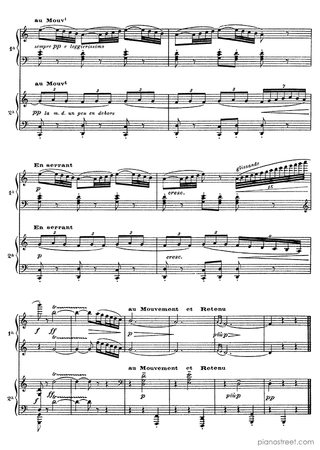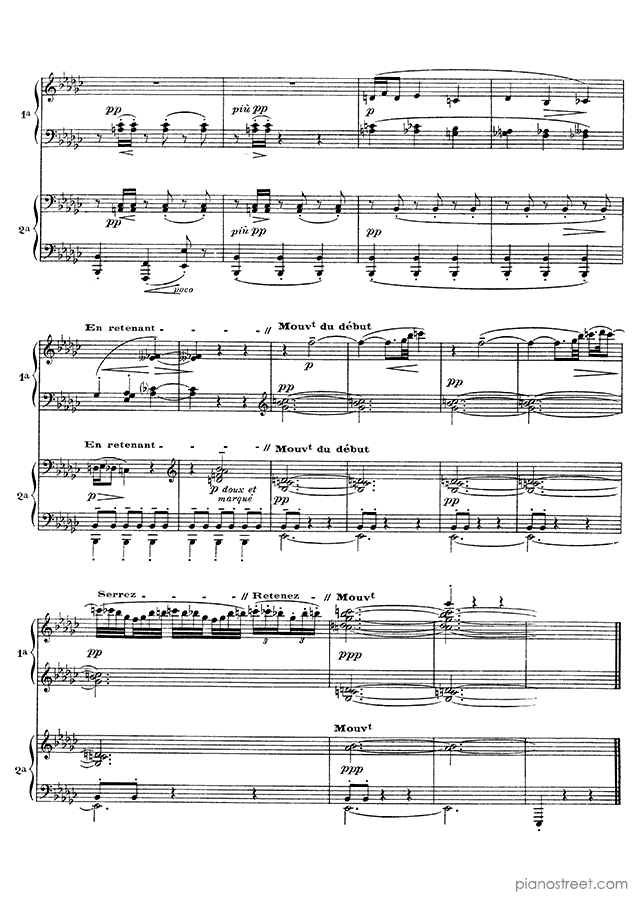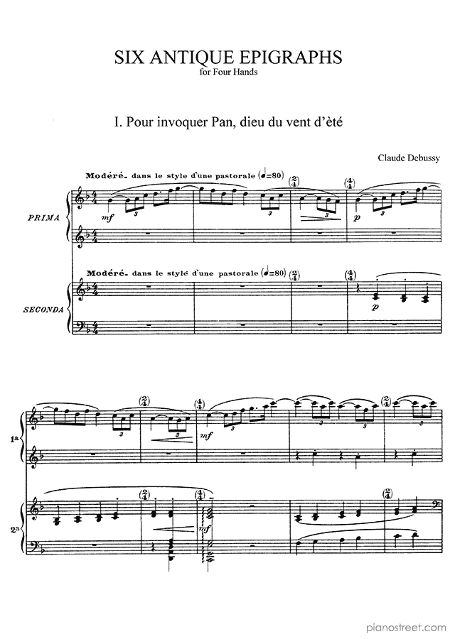 Impressionism piano sheet music by Claude Debussy to download and print instantly: Six épigraphes antiques - for four hands in the key of . Level 8+, compositional type: (published in 1914)