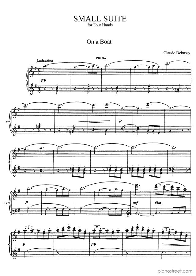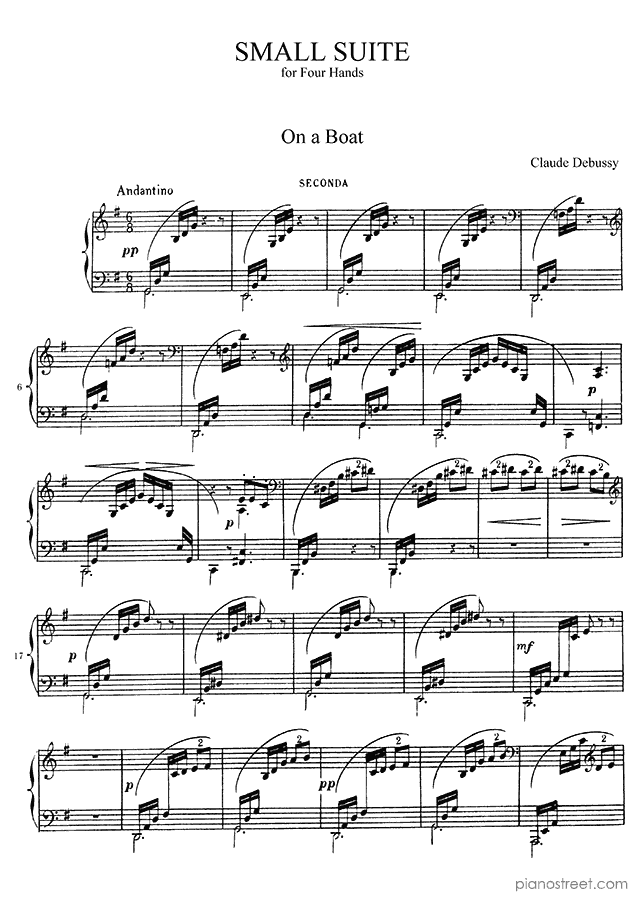 Claude Debussy: Small Suite - piano sheet music to print instantly. This piece is level 8+ and was composed during the Impressionism period.