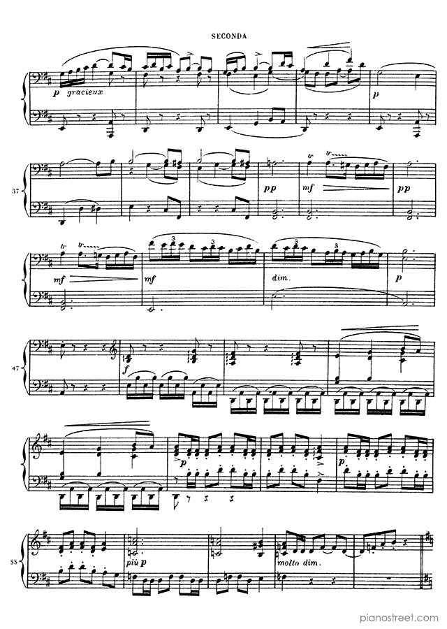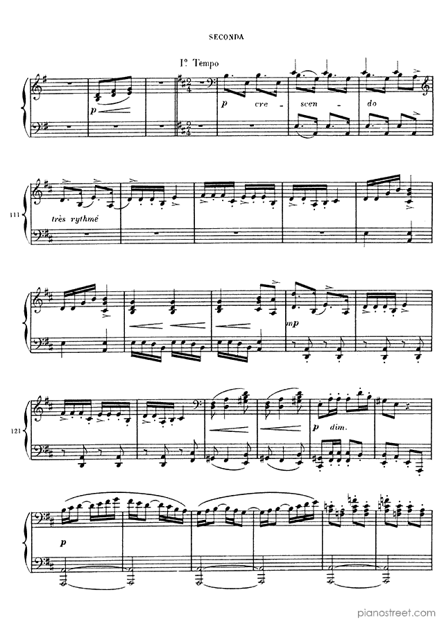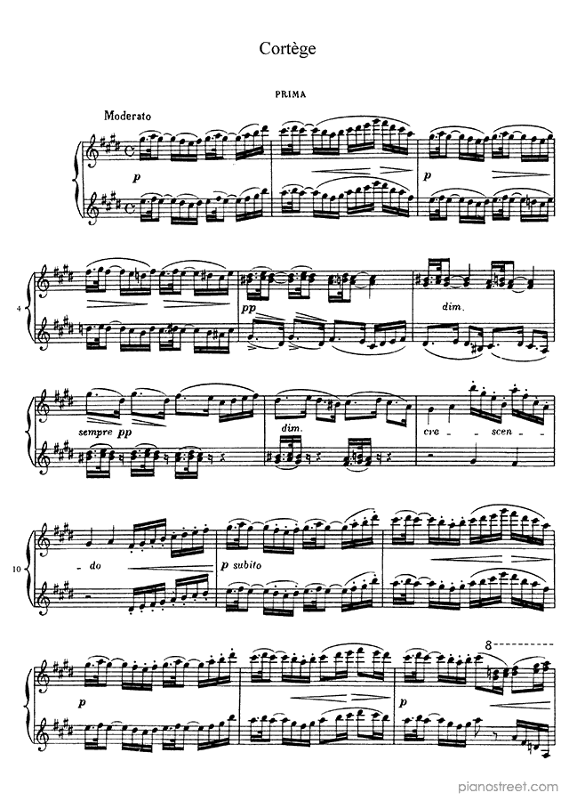 This piece is composed by Claude Debussy and was published in 1889. Title: Small Suite, . The difficulty level is around ABRSM grade 8+ and it belongs to the Impressionism period.