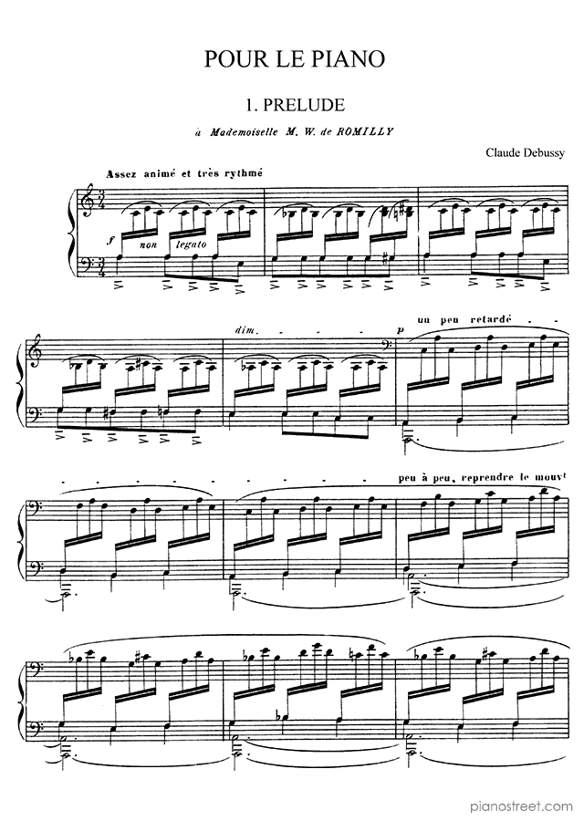 Prelude No. 1 in A Minor (published in 1896) from Pour le piano by Claude Debussy - piano sheet music to download and print instantly.