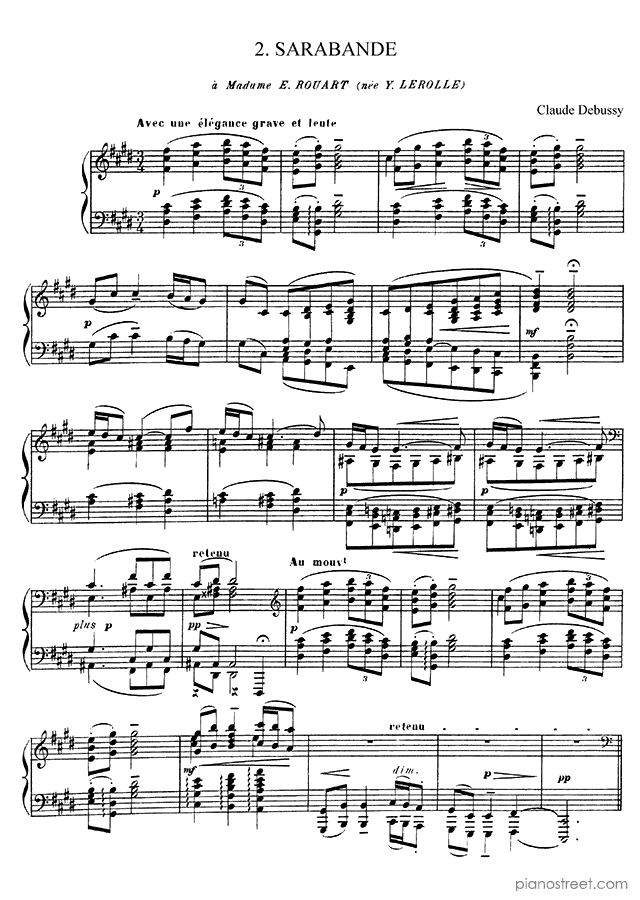 The composition was first published in 1896 and is included in Pour le piano by Debussy.