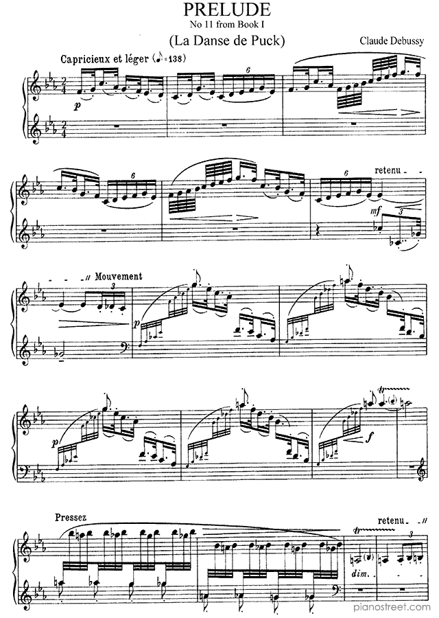 Prelude - La Danse de Puck Book 1 No. 11 by Claude Debussy. Sheet music and recordings of thousands of piano pieces by Claude Debussy and many other famous composers to view in your digital device, print out or listen to.