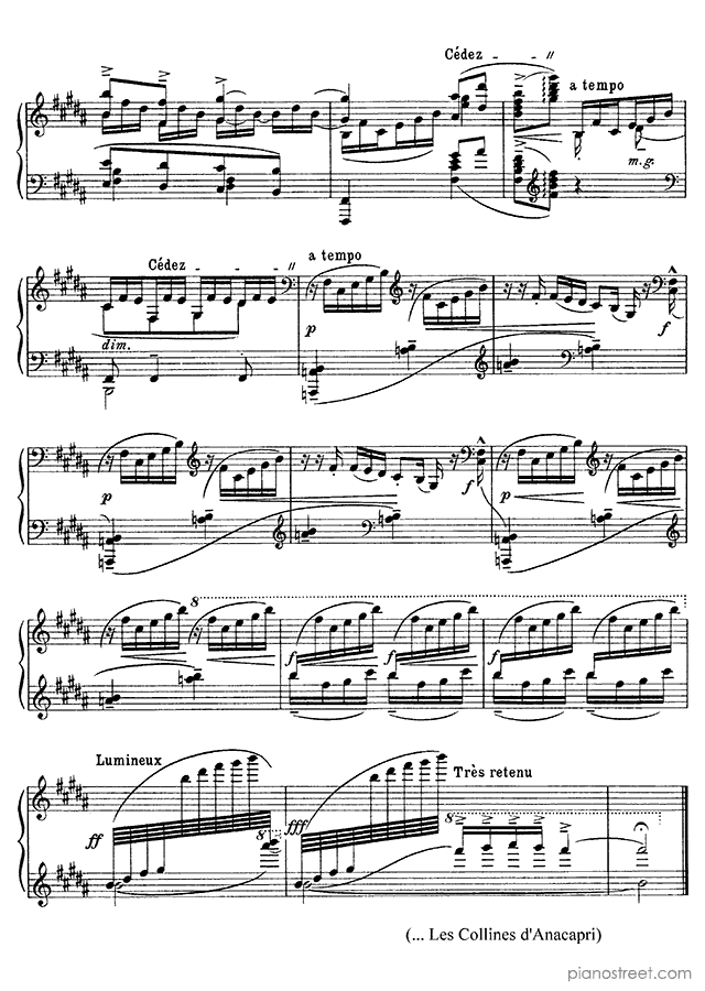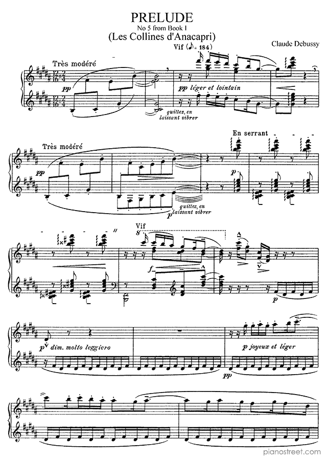 Downloadable piano sheet music from Preludes by Claude Debussy to print: Prelude - Les Collines d'Anacapri Book 1 No. 5 (published in 1908)